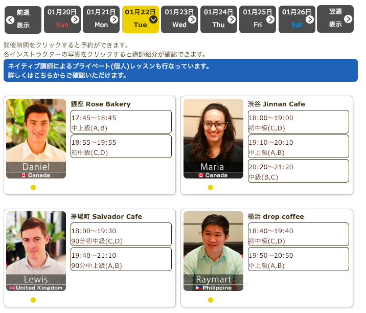 毎日仕事帰りにプレミアムカフェ英会話♪直前予約可能