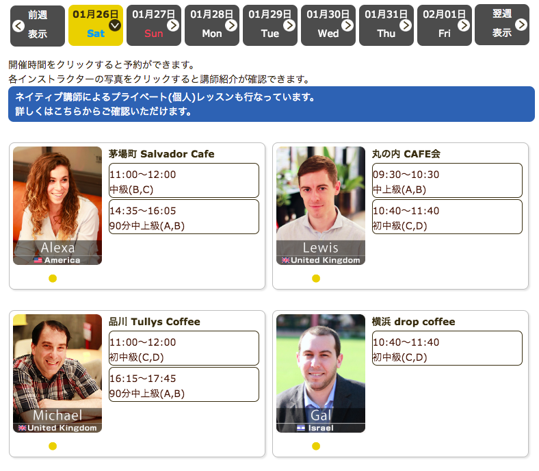 毎日仕事帰りや祝日に、駅近カフェでネイティブとカフェ英会話を開催しています。直前予約でも参加可能、本日もご参加お待ちしています。