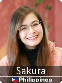 皆さん、こんにちはサクラです。私は、日本とフィリピンのハーフで、生まれは日本ですが育ちはフィリピンです。