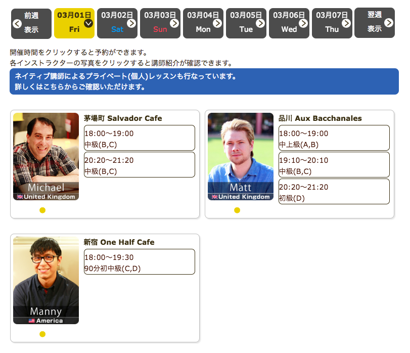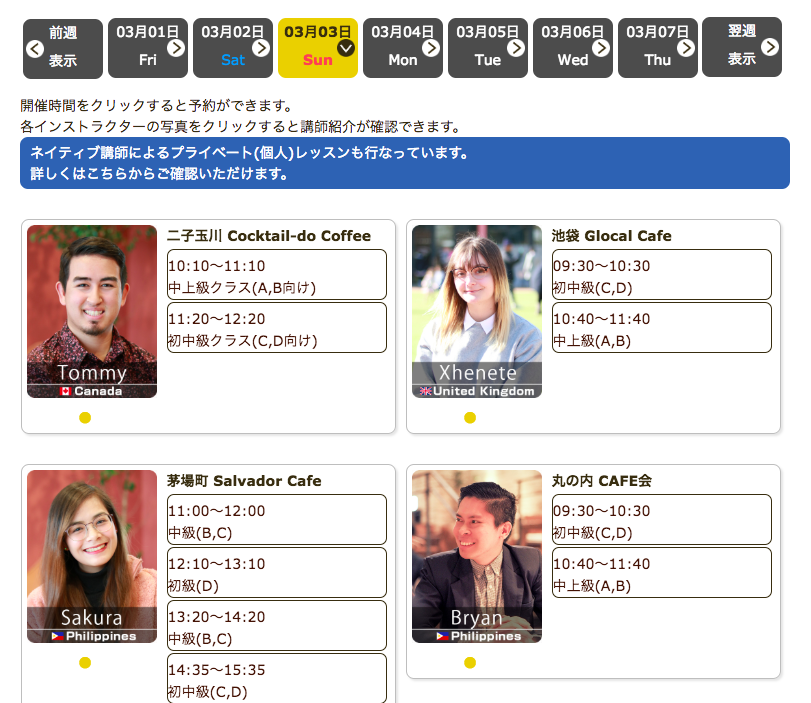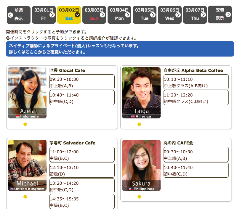 毎日仕事帰りや祝日に、駅近カフェで外国人講師による英会話レッスンを開催しています。直前予約でも参加可能、本日もご参加お待ちしています。