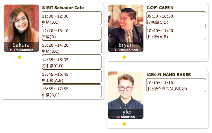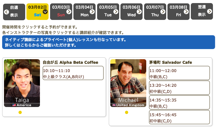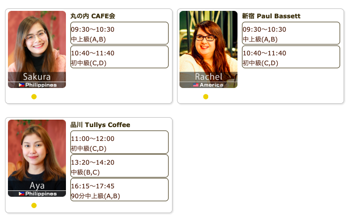 毎日仕事帰りや祝日に、駅近カフェで外国人講師による英会話レッスンを開催しています。直前予約でも参加可能、本日もご参加お待ちしています。