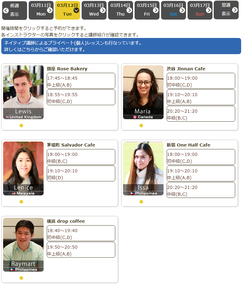 毎日仕事帰りにプレミアムカフェ英会話♪直前予約可能