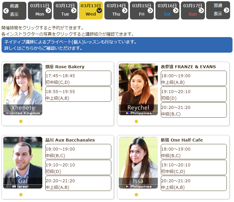 毎日仕事帰りや祝日に、駅近カフェで外国人講師による英会話レッスンを開催しています。直前予約でも参加可能、本日もご参加お待ちしています。