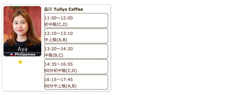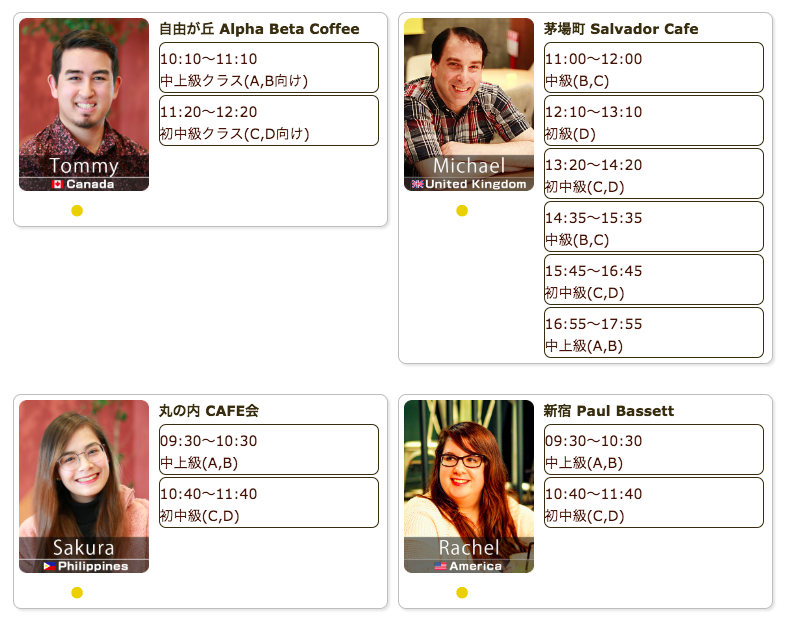 毎日仕事帰りや祝日に、駅近カフェで外国人講師による英会話レッスンを開催しています。直前予約でも参加可能、本日もご参加お待ちしています。