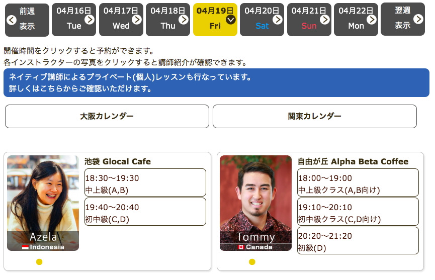 毎日仕事帰りにプレミアムカフェ英会話♪直前予約可能