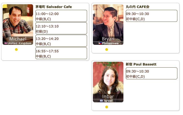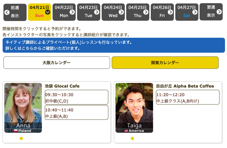 毎日仕事帰りや祝日に、駅近カフェで外国人講師による英会話レッスンを開催しています。直前予約でも参加可能、本日もご参加お待ちしています。