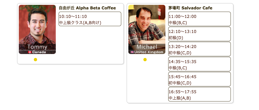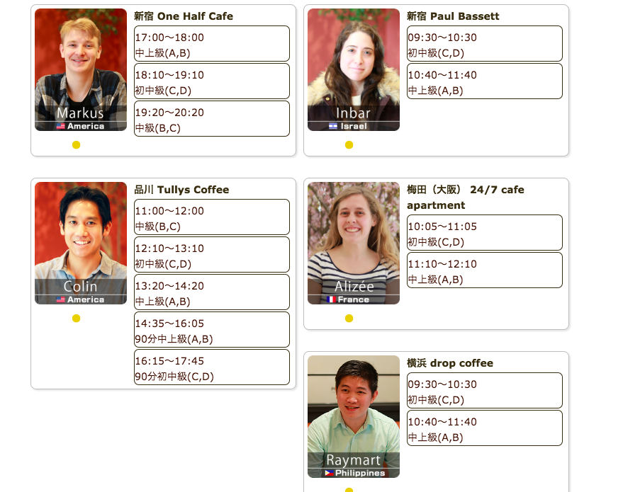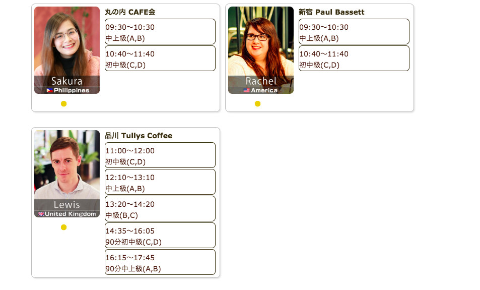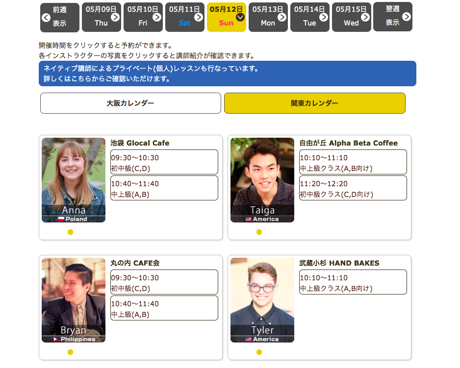 毎日仕事帰りや祝日に、駅近カフェで外国人講師による英会話レッスンを開催しています。直前予約でも参加可能、本日もご参加お待ちしています。