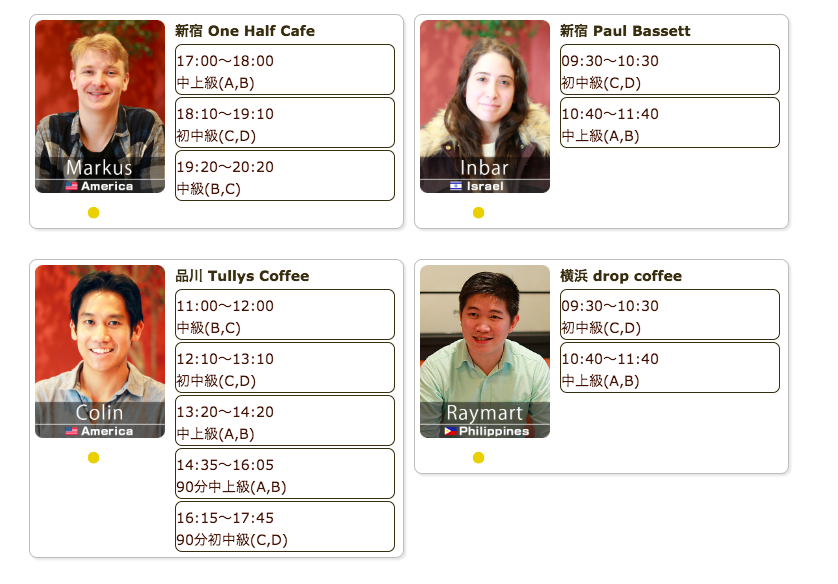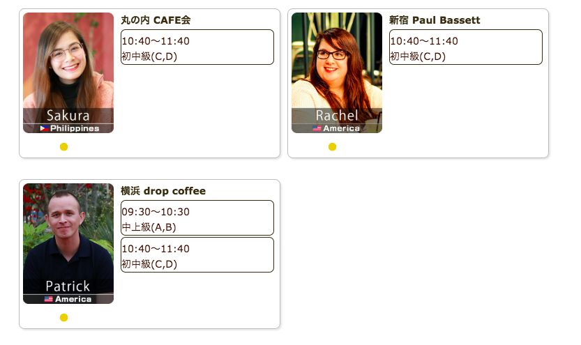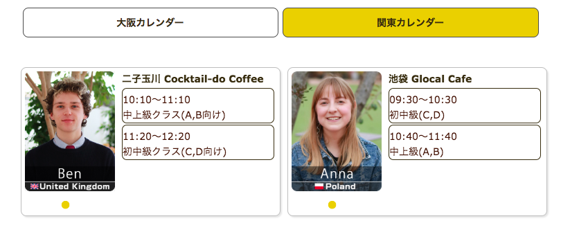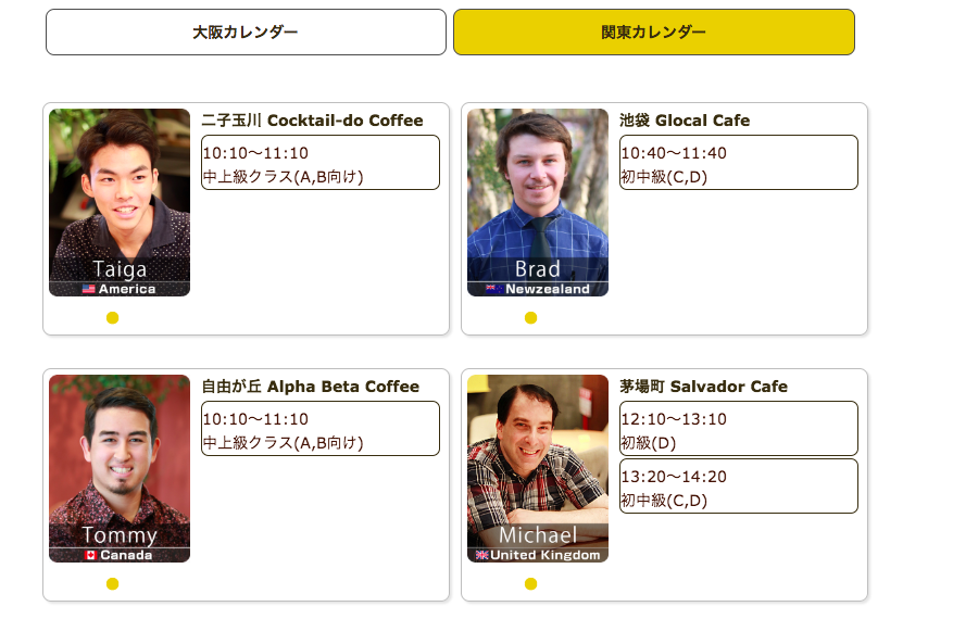 毎日仕事帰りや祝日に、駅近カフェで外国人講師による英会話レッスンを開催しています。直前予約でも参加可能、本日もご参加お待ちしています。