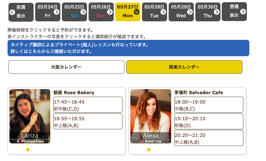 毎日仕事帰りにプレミアムカフェ英会話♪直前予約可能