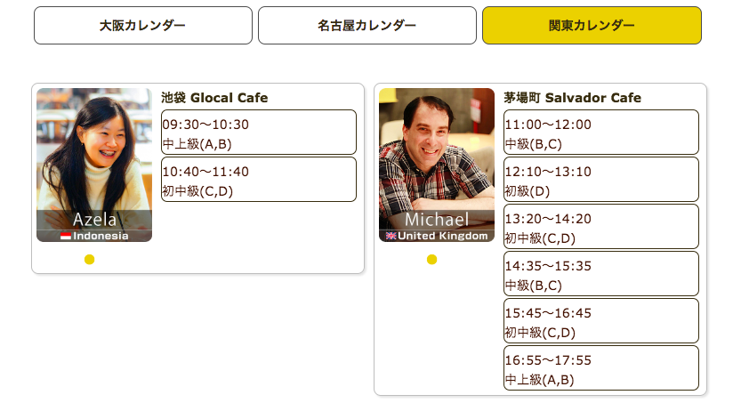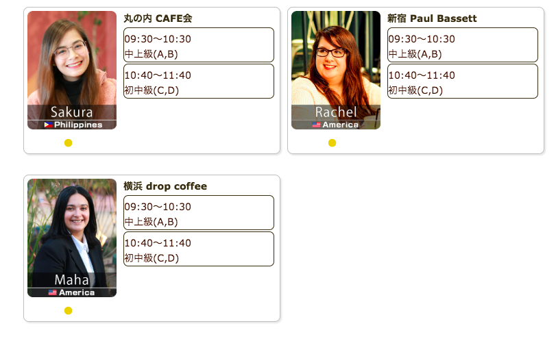 毎日仕事帰りや祝日に、駅近カフェで外国人講師による英会話レッスンを開催しています。直前予約でも参加可能、本日もご参加お待ちしています。