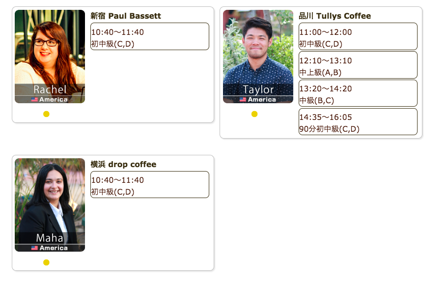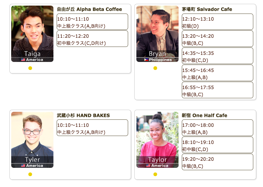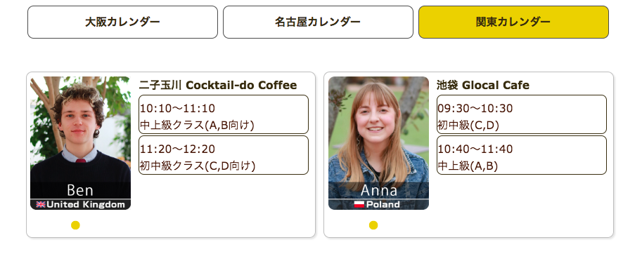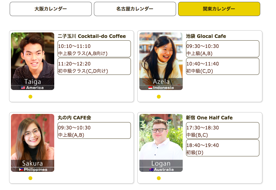 毎日仕事帰りや祝日に、駅近カフェで外国人講師による英会話レッスンを開催しています。直前予約でも参加可能、本日もご参加お待ちしています。
