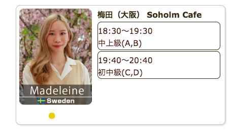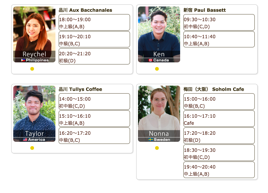毎日仕事帰りや祝日に、駅近カフェで外国人講師による英会話レッスンを開催しています。直前予約でも参加可能、本日もご参加お待ちしています。