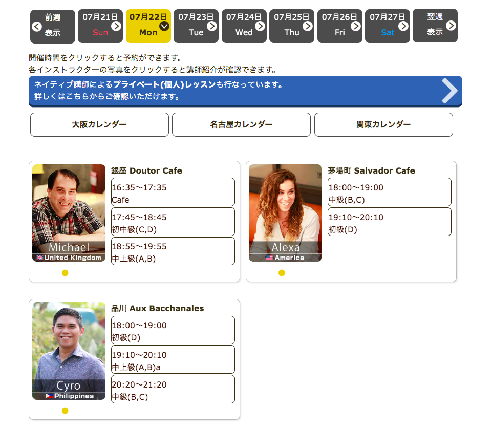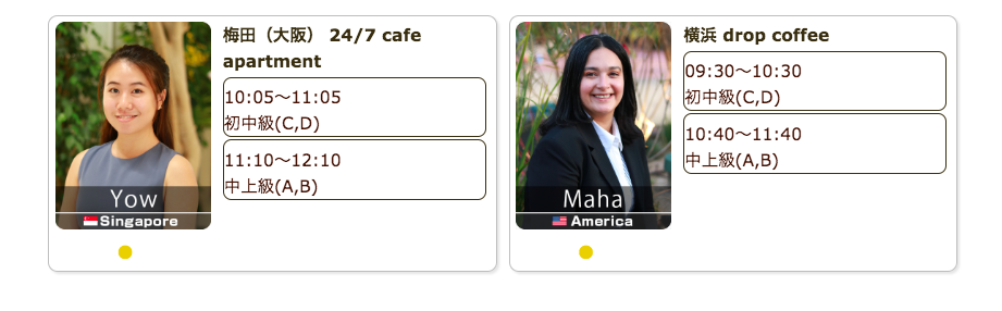 毎日仕事帰りや祝日に、駅近カフェで外国人講師による英会話レッスンを開催しています。直前予約でも参加可能、本日もご参加お待ちしています。