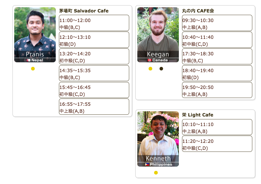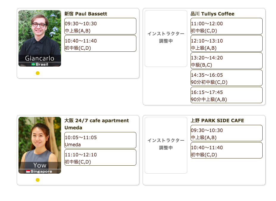 毎日仕事帰りや祝日に、駅近カフェで外国人講師による英会話レッスンを開催しています。直前予約でも参加可能、本日もご参加お待ちしています。