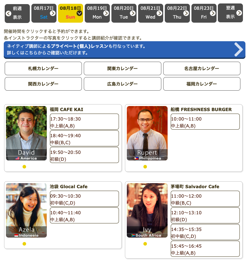 毎日仕事帰りや祝日に、駅近カフェで外国人講師による英会話レッスンを開催しています。直前予約でも参加可能、本日もご参加お待ちしています。