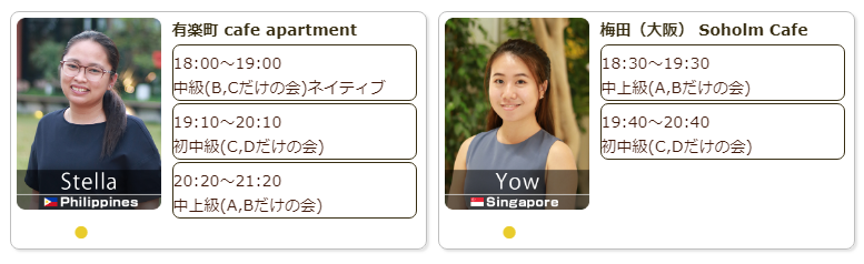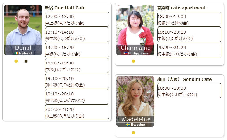 毎日仕事帰りや祝日に、駅近カフェで外国人講師による英会話レッスンを開催しています。直前予約でも参加可能、本日もご参加お待ちしています。