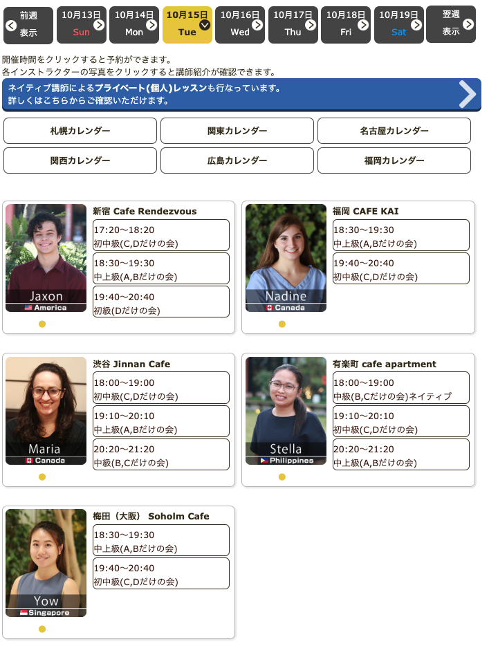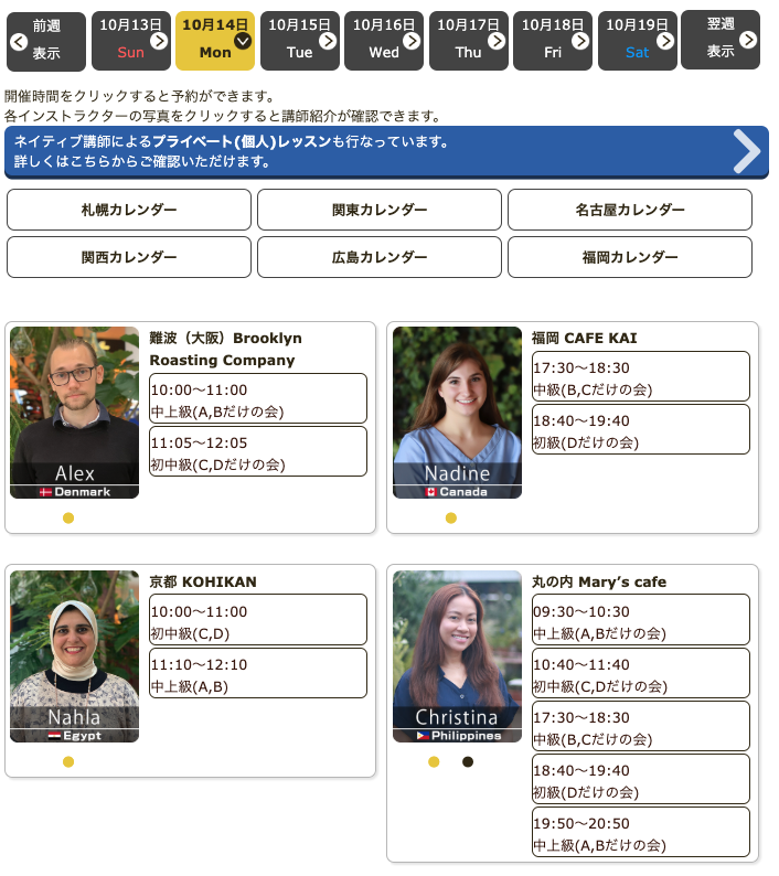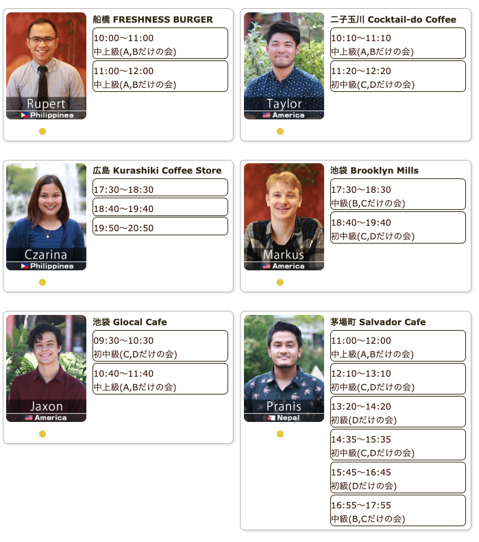 毎日仕事帰りや祝日に、駅近カフェで外国人講師による英会話レッスンを開催しています。直前予約でも参加可能、本日もご参加お待ちしています。