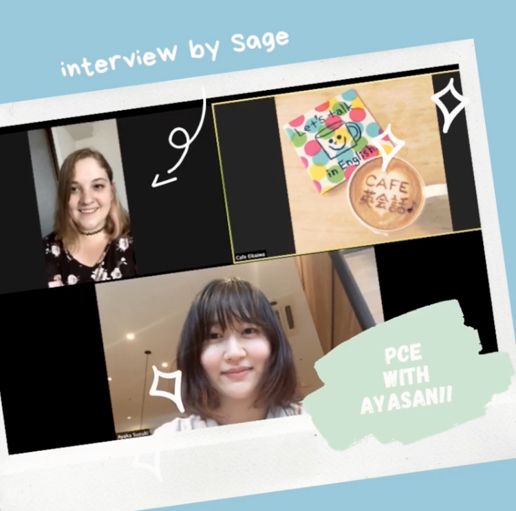 Sage(以下S):とっても朗らかで魅力的な生徒さんの一人であるAyaさん。いつもご参加ありがとうございます。プレミアムカフェ英会話♪の参加のきっかけを教えてください♪