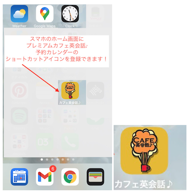 スマホのホーム画面に、カフェ英会話♪やプレミアムカフェ英会話♪(グループレッスン)のカレンダーをアイコンとして追加できるってご存じでしたか?