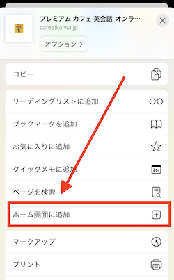 ※機種によっては「ホーム画面に追加」などと表示されます。