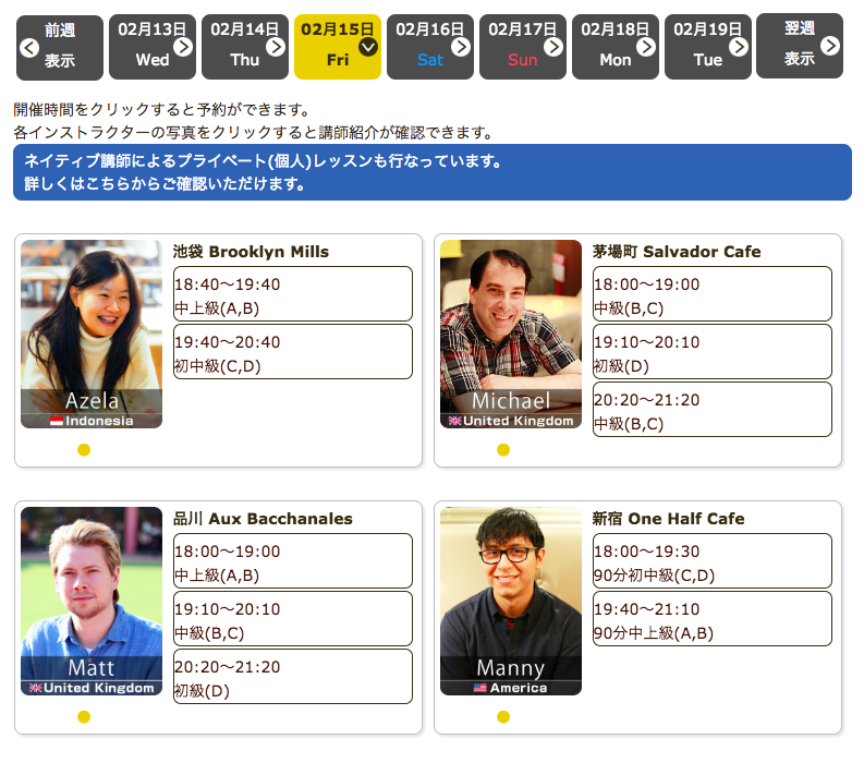 毎日仕事帰りにプレミアムカフェ英会話♪直前予約可能