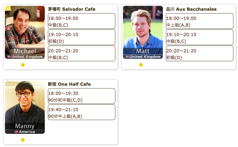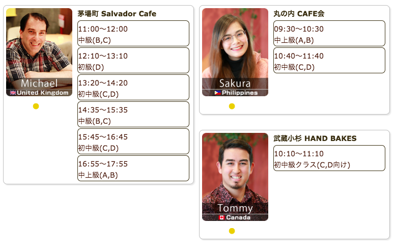 毎日仕事帰りや祝日に、駅近カフェで外国人講師による英会話レッスンを開催しています。直前予約でも参加可能、本日もご参加お待ちしています。