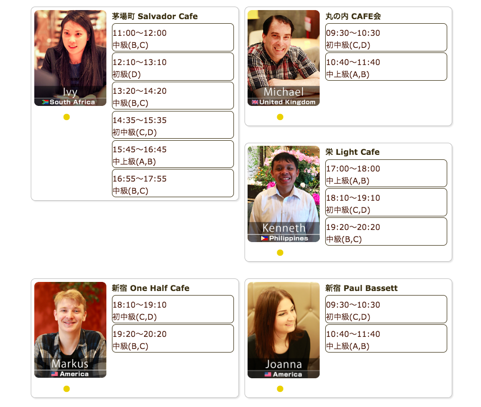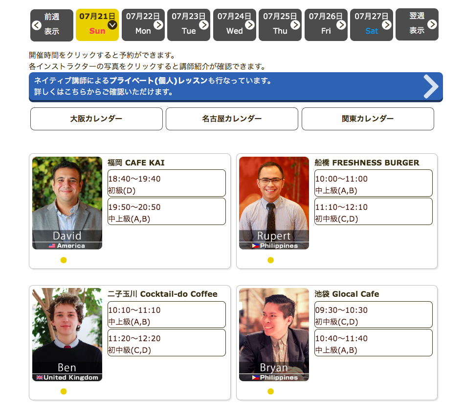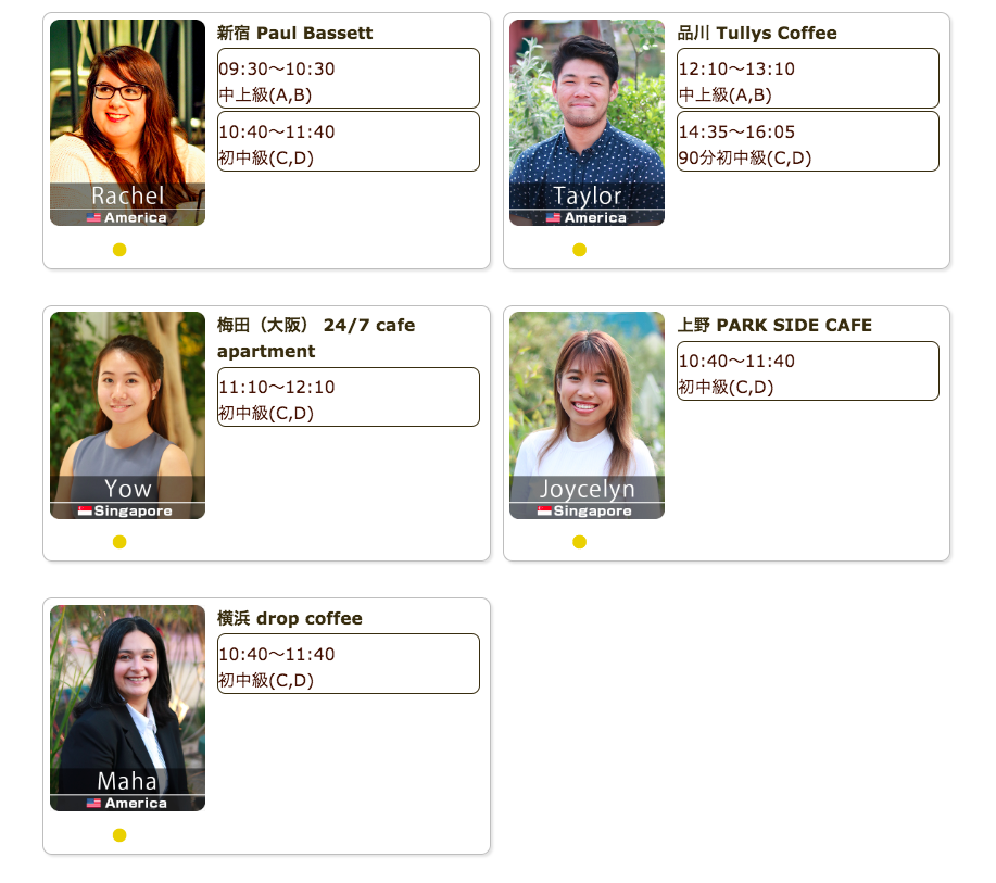 毎日仕事帰りや祝日に、駅近カフェで外国人講師による英会話レッスンを開催しています。直前予約でも参加可能、本日もご参加お待ちしています。