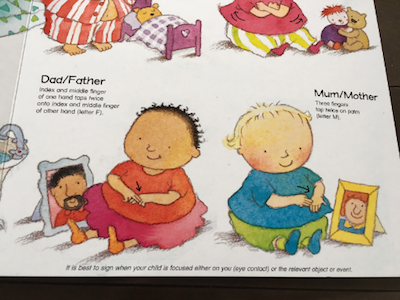 'My First Signs'という本なんですが、子どもに言葉とその意味をしぐさで伝えるための本です。