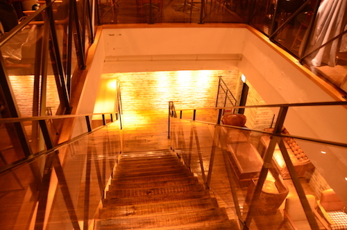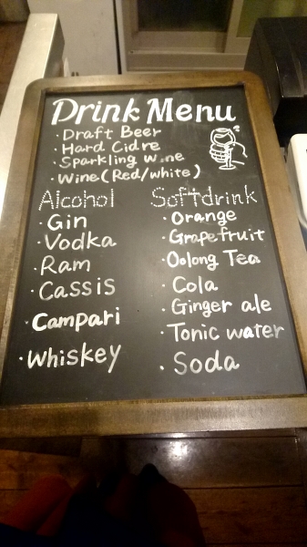 お店は1階と地下1階で営業していて、広々したバーのような雰囲気。最初に1階入り口で、カフェ英専用メニューからドリンクを選びます。