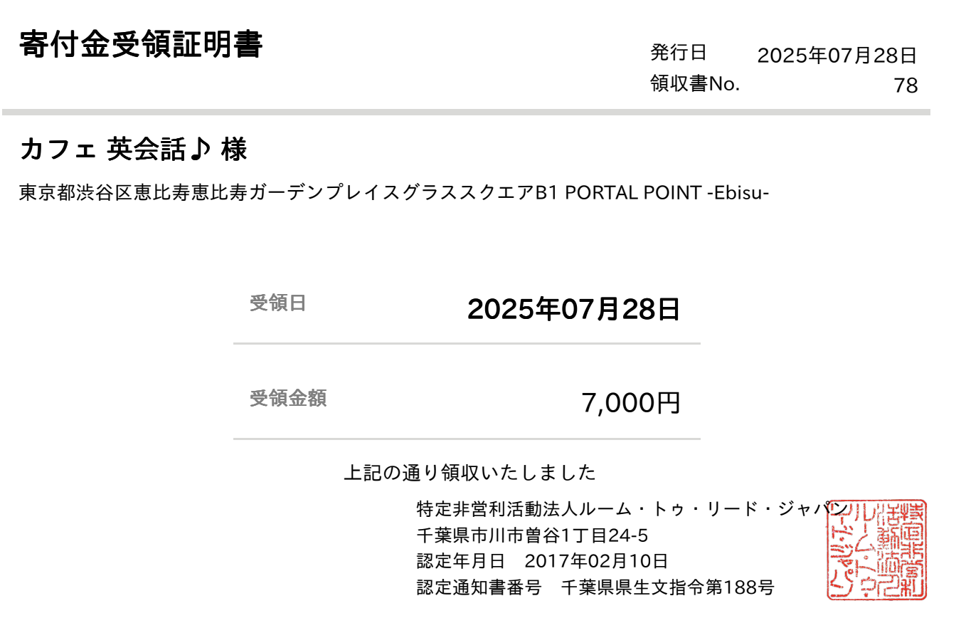 いつもカフェ英会話♪にご参加いただき、ありがとうございます。