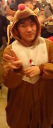 2年前のカフェ英♪クリスマスパーティーで、トナカイの着ぐるみを来て歩いていて会場内の池に落ちたこと。