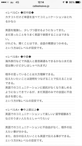 レベル分けは自己申告なので、AレベルとBレベルの分け方は人それぞれだと思いますが、私がHPのレベル分けを見た時に目指したいと思ったのがAレベルだったんです♪