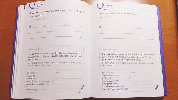 でも、この日記は一日一つの質問に答えるという、しかも何を書いていいか分からなかったらサンプルの英文を写すだけでもOKという日記なんです♪