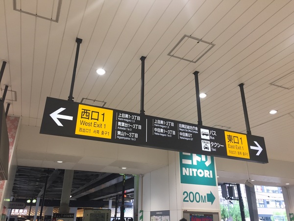 ① 東横線・日比谷線 中目黒駅 東口1側へ進む(向かいに蔦屋書店が見えるほうの改札口から出て右側が東口1)